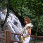 Ancora sesso e colazione in hotel poi si parte per le famose cascate di Agua Azul. Il cielo non promette nulla di buono ma procediamo lungo la serpeggiante strada che ci offre bellissimi scorci sulle montagne coperte di vegetazione. Vediamo anche dove vivono i maya del Chiapas oggi…capanne coperte di lamiere sono la norma qui….maiali, polli e tacchini razzolano tranquilli ai bordi delle strade. Gruppi di giovani ragazze sedute sulla soglia di casa osservano il traffico, altre offrono frutta sbucciata dentro sacchetti di plastica agli automobilisti che rallentano in prossimità delle topas ( dissuasori ) disseminate lungo i centri abitati che Vanni non sempre vede! Invece vede una pelle di serpente appesa ad un bastone ai bordi della strada, rallenta, fa retromarcia per poter vedere meglio ma non c’è nessuno a cui chiedere e così andiamo oltre. Avvicinandoci alle cascate di Agua Azul il tempo peggiora e quando scendiamo da Carolina addirittura piove. Muniti di ombrello e kway affrontiamo la breve passeggiata verso le cascate, belle ma poco azzurre haimè visto il cielo grigio. Vanni fa qualche acquisto, io do una crosta di formaggio ad un cane spelacchiato che circola nel parcheggio. Ciondoliamo un po’ speranzosi che il tempo migliorerà, ma dopo un’ora ripartiamo. Naturalmente Vanni non ha dimenticato la pelle di serpente ed anzi strada facendo cerca di ricordare dove fosse. Vista! Frena e suona il clacson per vedere se qualcuno arriva, intanto io scendo per vedere meglio e vedo che non c’è solo la pelle..si tratta invece di un serpente sbudellato messo ciondoloni su un bastone. Una famigliola di indios arriva camminando sul bordo della strada, chiedo loro del serpente. Non è semplice farsi capire da un indio che vive dentro la foresta del chapas….la loro lingua non è lo spagnolo e …nemmeno la mia. Ma quando si vuole qualcosa non ci sono barriere e con un po’ di spagnolo e molta mimica riesco a far capire loro che ciò che vogliamo non è il serpente intero ma solo la sua pelle conciata. Non è bastata la multa di 2000 € per la pelle di puma concolor presa un anno fa! Comunque ci accordiamo per 600 pesos (60 US$) al ritiro della pelle che sarà tra 5 o 6 giorni. Lasciamo loro un acconto di 100 pesos perché capiscano che non è uno scherzo e ci congediamo ridendo sotto i baffi. Di fronte a certe cose non riusciamo proprio a trattenerci. Una visitina ad un villaggio Zapatista dove i bambini seguono correndo e ridendo la macchina, come fosse un gioco divertente….poi di nuovo l’hotel di Palenque. Metto in libertà i machech perché si sgranchiscano le zampette poi batto Vanni 3 a 0 a backgammon . Cena in hotel per non rischiare ulteriori dissenterie…quella di oggi è bastata!